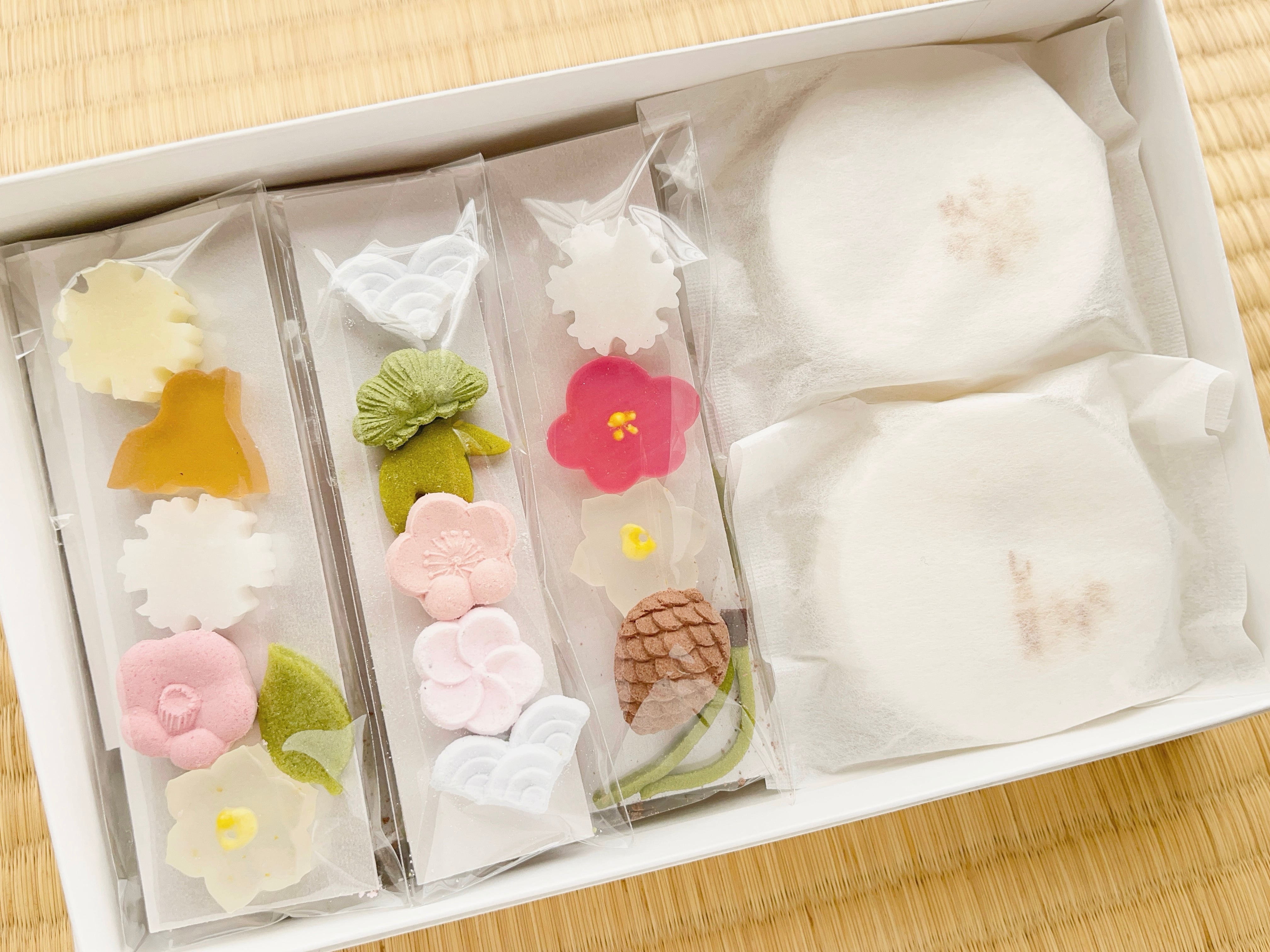 冬の花や縁起物のモチーフを象ったお干菓子、タイプやお味もさまざまです。親しい方へ今年一年のありがとうを形にしたギフトとしてぜひご利用ください。